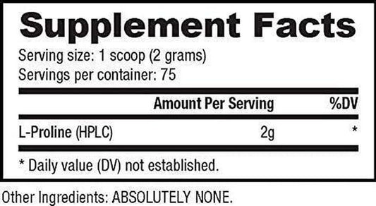 NutraBio L-Proline Supplement (150 Grams of Powder)