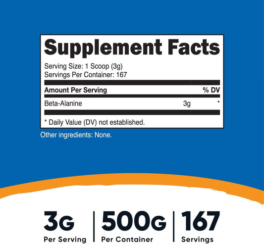 Nutricost Beta Alanine Powder 500 Grams (1.1lbs) - Pure Beta Alanine, Gluten Free and Non-GMO