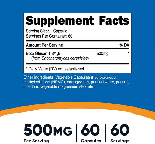 Nutricost Beta Glucan 500mg 1,3D Glucan, 60 Veggie Capsules - Gluten Free, Non-GMO