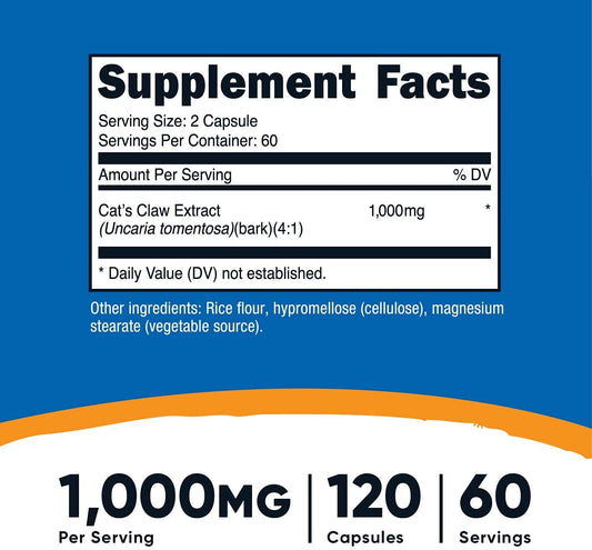 Nutricost Cat's Claw 1000mg, 120 Capsules - Veggie Caps, Non-GMO and Gluten Free