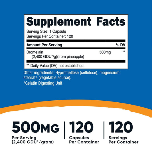 Nutricost Bromelain 500mg, 120 Veggie Capsules - Bromelain (2400 GDU/g), Non-GMO, Gluten Free