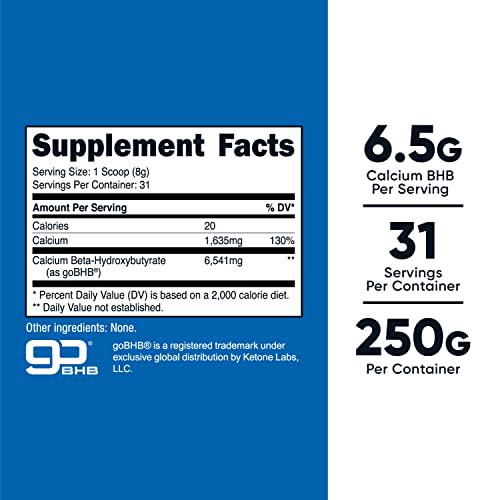 Nutricost Calcium BHB Salts, Exogenous Ketone Supplement, 6.5g Beta-Hydroxybutyrate Per Serving, 250 Grams (30 Serv)