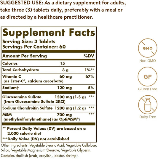 Solgar Glucosamine Hyaluronic Acid Chondroitin MSM (Shellfish-Free) Tablets 120ct