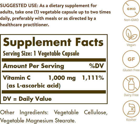 Solgar - Vitamin C 1000 mg Vegetable Capsules 250 Count