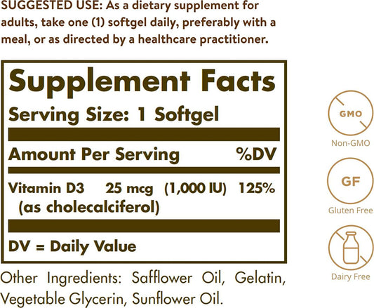 Solgar - Vitamin D3 (Cholecalciferol) 1,000 IU, 250 Softgels