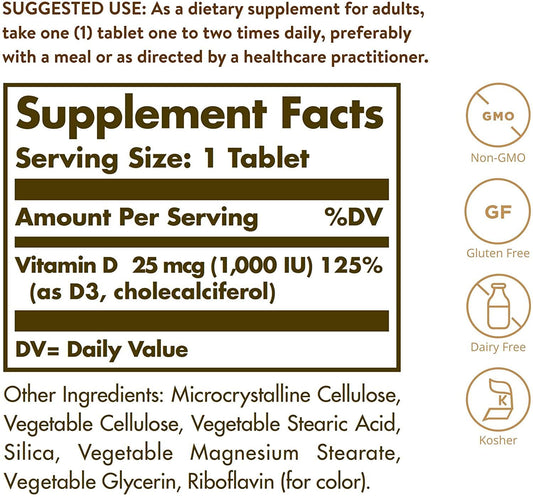 Solgar - Vitamin D3 (Cholecalciferol) 1000 IU Tablets 180 Count