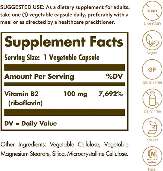 Solgar - Vitamin B2 (Riboflavin) 100 mg. - 100 Vegetarian Capsules