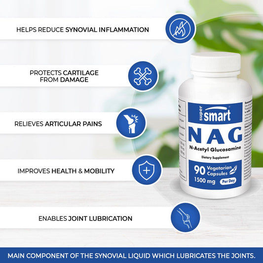 Supersmart - NAG 1500 Mg per Day (N-Acetyl Glucosamine) - Joint Supplements - Hyaluronic Acid & Collagen Support | Non-Gmo & Gluten Free - 90 Vegetarian Capsules