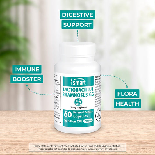 Supersmart - Lactobacillus Rhamnosus GG 10 Billion CFU per Day - Probiotic Supplement - Digestive Support - Vaginal Flora Health | Non-Gmo & Gluten Free - 60 DR Capsules