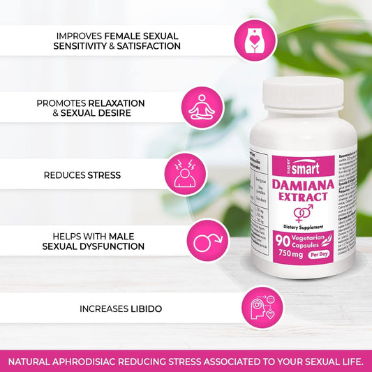Supersmart - Damiana Extract 750 mg Per Day - Herbal Supplement - Tonic Herb - 100% Natural Aphrodisiac | Non-GMO and Gluten Free - 90 Vegetarian Capsules