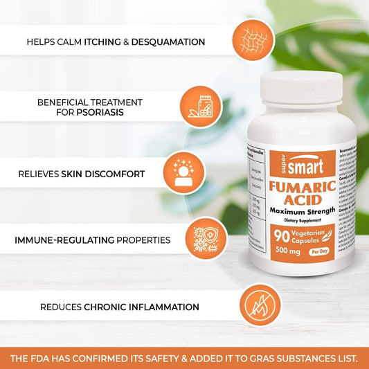 Supersmart - Fumaric Acid 500 mg - May Help to Reduce Patches of Peeling Skin - Anti Inflammatory Supplement | Non-GMO - 90 Vegetarian Capsules