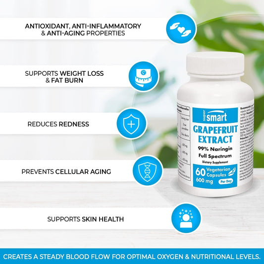 Supersmart - Grapefruit Extract 600 mg Per Day - Standardized to 99 % Naringin - Weight Loss Pills - Immune System Booster and Antioxidant Supplement | Non-GMO and Gluten Free - 60 Vegetarian Capsules