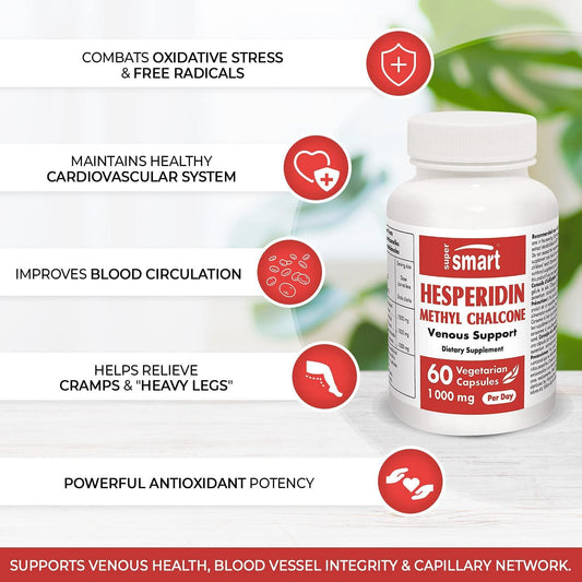 Supersmart - Hesperidin Methyl Chalcone 1000 mg Per Day - Citrus Aurentium Standardized to 99% - Support Healthy Blood Circulation | Non-GMO and Gluten Free - 60 Vegetarian Capsules