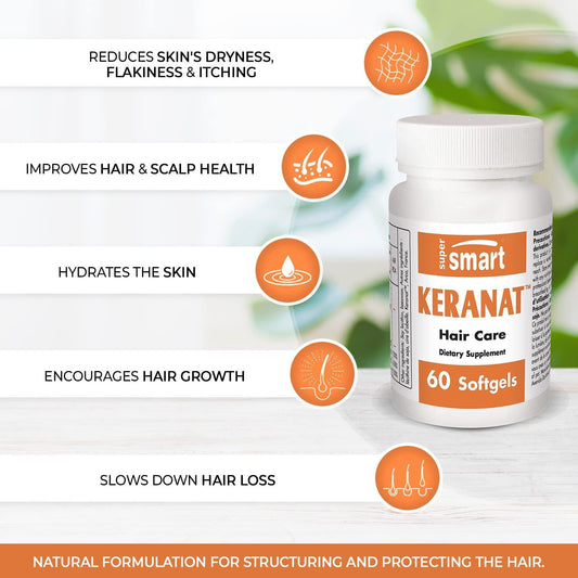 Supersmart - Keranat - Hair Supplement - Reduces Hair Loss and Improves Volume and Growth | Non-GMO - 60 Softgels