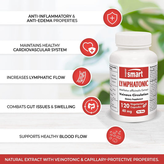 Supersmart - Lymphatonic 40 Mg per Day - Lymphatic Drainage Supplement - Swelling Relief & Veinotonic Pills | Non-Gmo & Gluten Free - 120 Vegetarian Capsules
