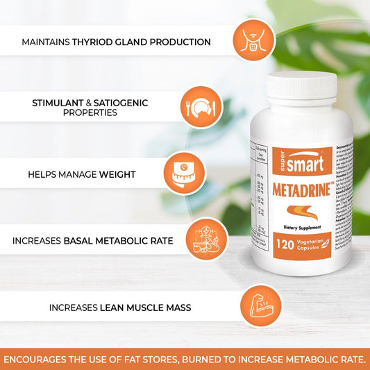 Supersmart - Metadrine™ - Thermogenic Fat Burner Supplement - Weight Loss Diet Pills - Slimming for Women & Men | Non-Gmo & Gluten Free - 120 Vegetarian Capsules