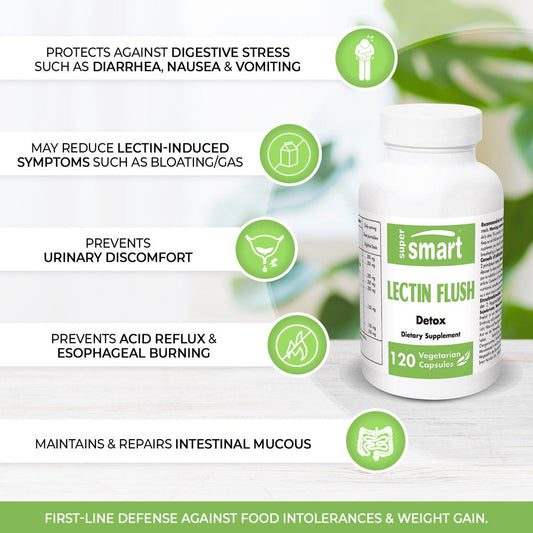 Supersmart - Lectin Flush - Gut Health - Food Allergies & Intolerances - Digestive Support | Non-Gmo & Gluten Free - 120 Vegetarian Capsules