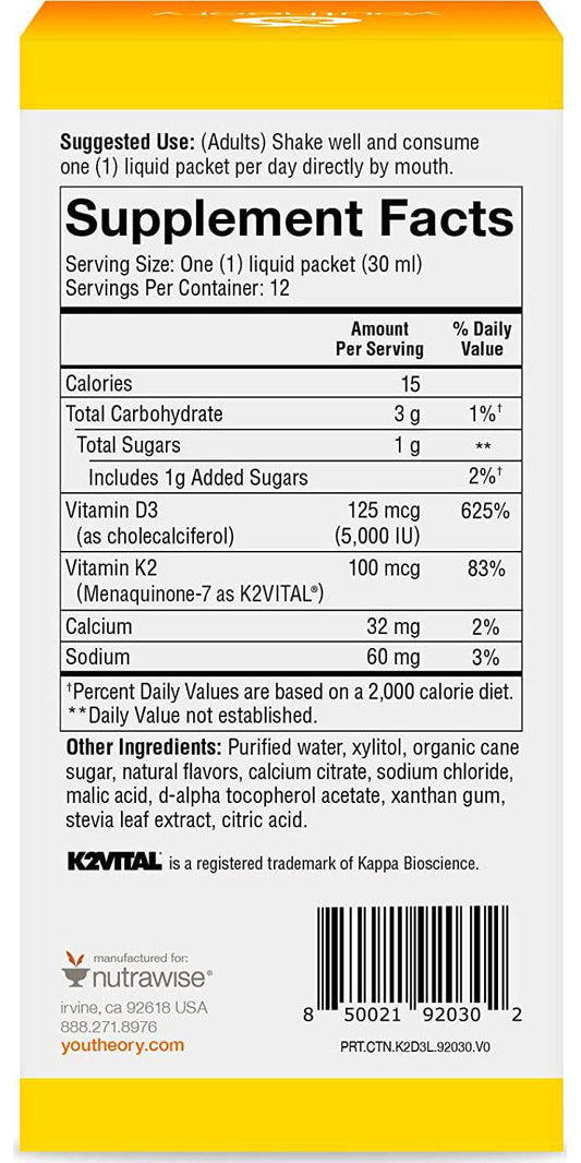 Youtheory K2D3 Liquid Peach Flavor, 12 Single Serving Packets