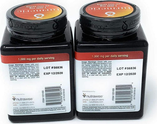 Youtheory Turmeric Extra Strength Formula 1,000 Mg., 180 Capsules 2PK