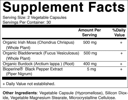 Vitamatic Organic Irish Sea Moss 120 Vegetarian Capsules - Made with Organic Bladderwrack and Organic Burdock Root - Seamoss Supplement for Thyroid, Energy, Immune Support