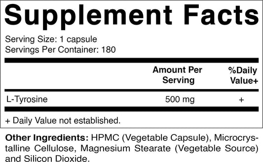 Vitamatic L-Tyrosine 500 mg 180 Veg Capsules - Supports Mental Clarity – Promotes Alertness – Boosts Energy