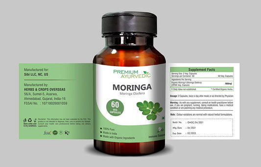 Organic Moringa 900 MG - 60 Vegan Capsules - Premium Ayurvedic