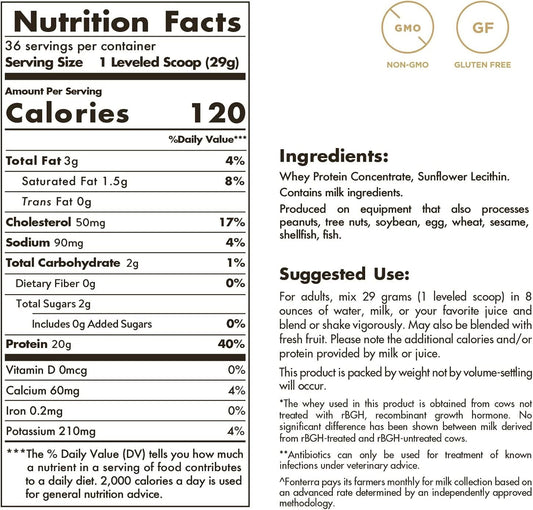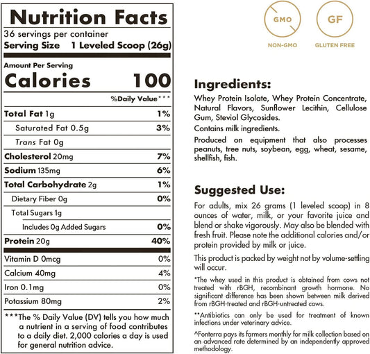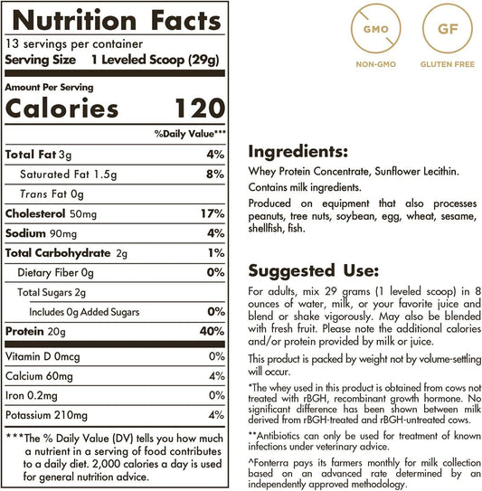 Solgar Grass Fed Whey to Go Protein Powder Unflavored, 2.3 lbs - 20g of Grass-Fed Protein from New Zealand Cows - Great Tasting and Mixes Easily - Supports Strength and Recovery - Non-GMO, 36 Servings