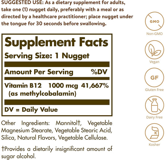 Solgar Methylcobalamin (Vitamin B12) 1000 mcg Nuggets, 60 Count 2 Pack