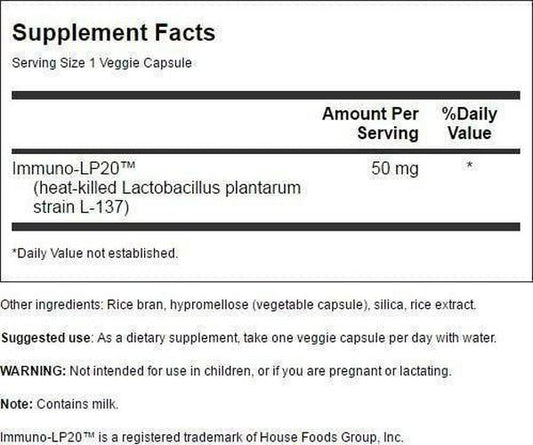 Swanson Immunobiotic Immuno-Lp20 50 Milligrams 30 Veg Capsules