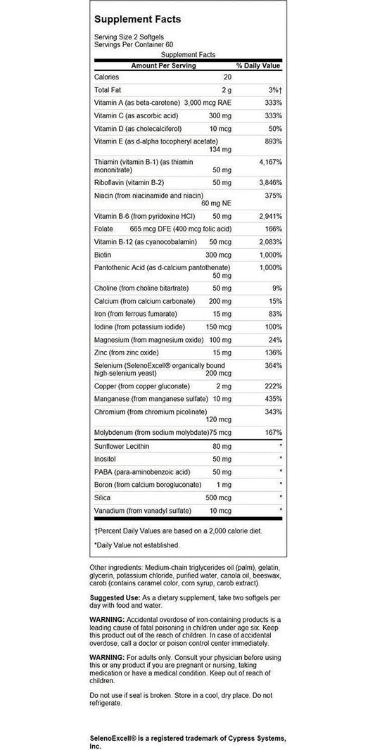 Swanson Multi Without Iron Multivitamin Health Supplement Iron-Free Formula 120 Softgels Sgels