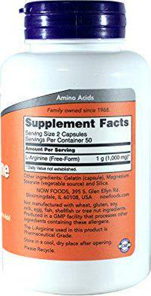 Now Foods Arginine 500mg, 100 Capsules (Pack of 2)