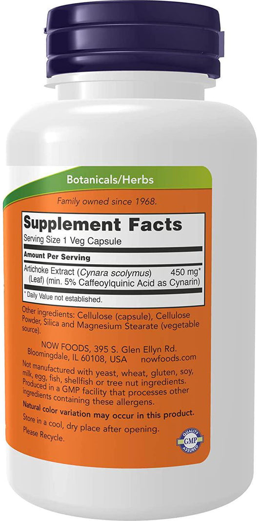 Now Foods Artichoke Extract 450mg, Veg-capsules, 90-Count
