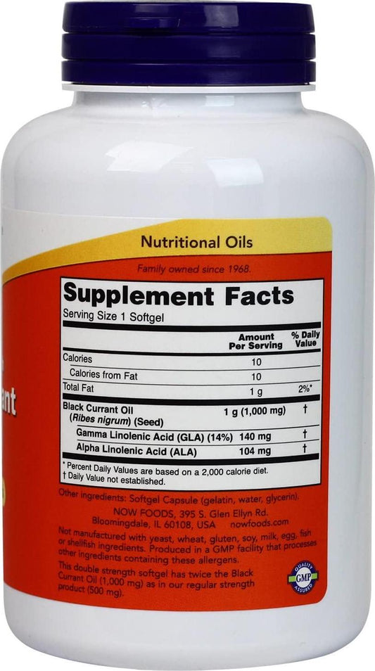 Now Foods Double Strength Black Currant Oil Dietary Supplement, 1000 mg, 100 Softgels