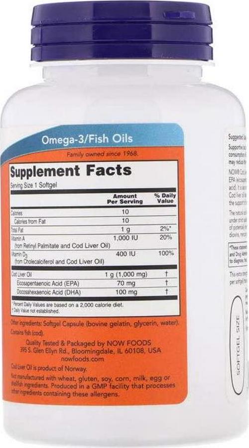 Now Foods Cod Liver Oil Soft Gels, 1000 mg, 90 Count
