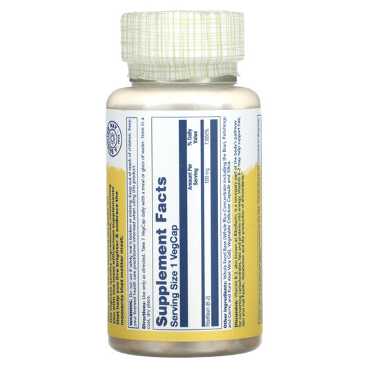 Solaray Vitamin B-2 Riboflavin 100 Mg with Aloe Vera | Healthy Energy Metabolism, Skin, Hair & Nails | 100 CT