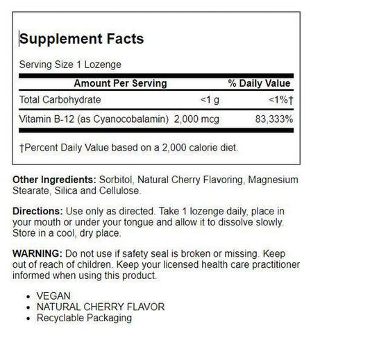 Solaray Vitamin B-12 2000 Mcg, Sugar-Free Natural Cherry Flavor, Healthy Energy & Red Blood Cell Support, 90 Lozenges