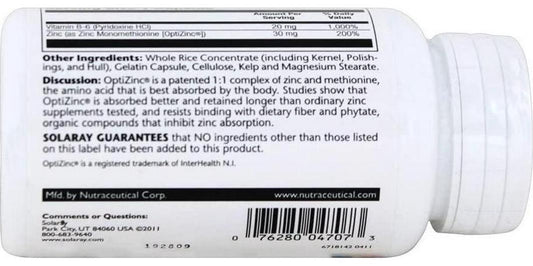 Solaray, Optizinc 30Mg, 60 Capsules