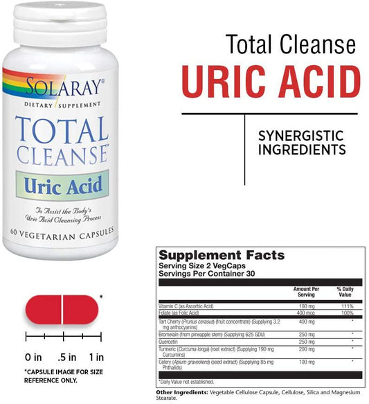 Solaray Total Cleanse Uric Acid | Tart Cherry, Bromelain, Quercetin and More | Joint Comfort Support | Vegan | 60 Caps