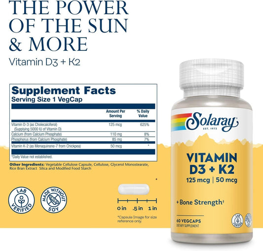 Solaray Vitamin D-3 + K-2 60 Ct