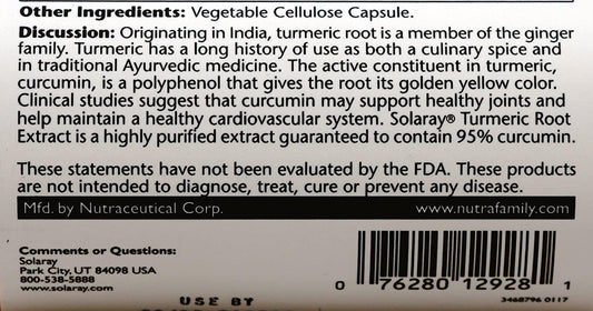 Solaray Turmeric Root Extract 300Mg Joint & Heart Health Support Guaranteed Potency Extract (120 CT)