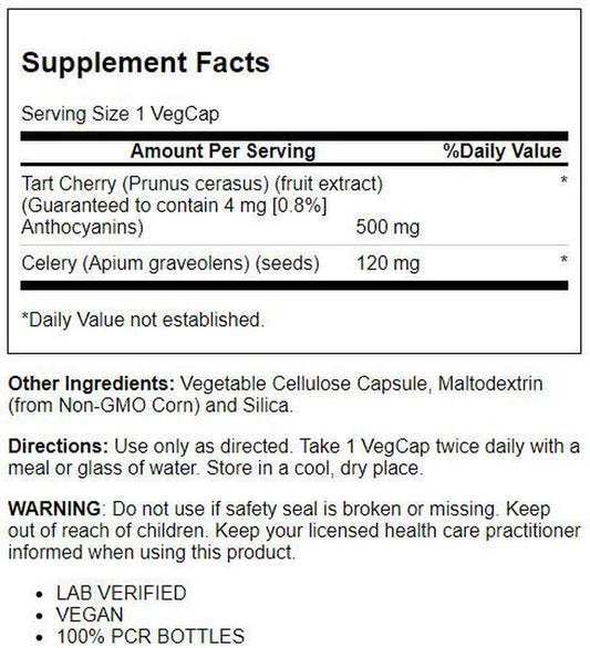 Solaray Tart Cherry & Celery Seed | Healthy Uric Acid Levels, Joint, Muscle Recovery & Sleep Support | 60 Vegcaps