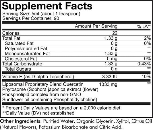 Nanofood Liposomal Quercetin Phytosome Liquid Drops Supplement, Vitamin E, Phospholipid, Vegan, Non-GMO, 3 Months Supply, 90 Servings