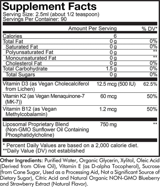 Vegan Vitamin D3 + K2 + B12 Sugar Free Liposomal Liquid - Bone Health Immune Support - Berry (30 Single Serving Packets)