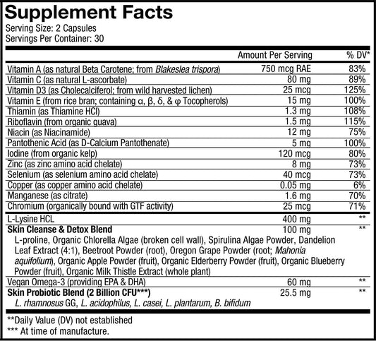 Codeage Skin Probiotics 50 Billion CFU & Prebiotics, Skin Ayurvedic Botanical Herbs, Shelf-Stable, 60 Ct