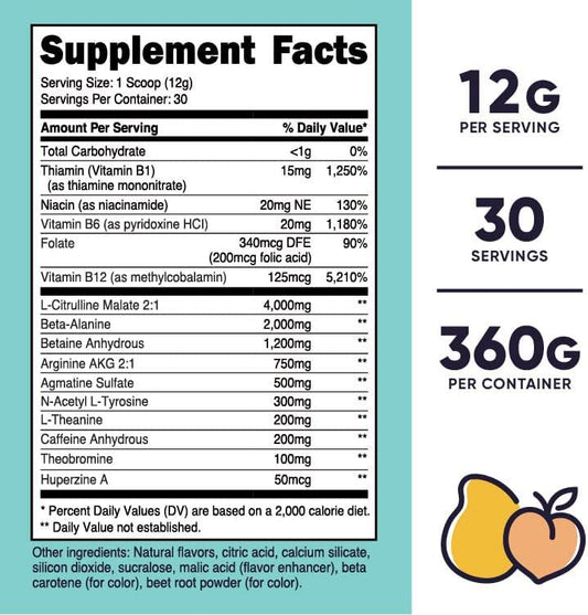 Nutricost Pre-Workout Powder for Women, Peach Mango, 30 Servings