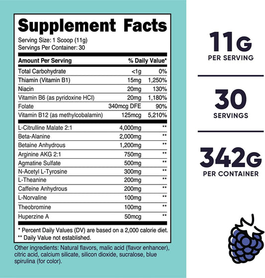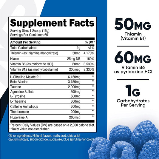 Nutricost Pre-Workout Complex Powder Blue Raspberry (60 Serv)
