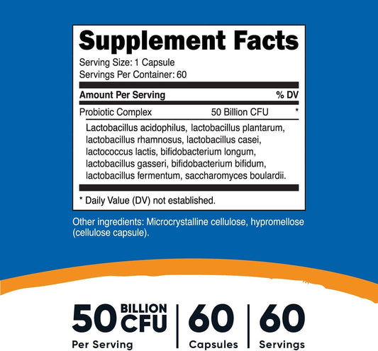 Nutricost Probiotic Complex - 50 Billion Cfu, ules - Probiotic For Men And Women - Veggie Capsules, Non-Gmo, Gluten Free