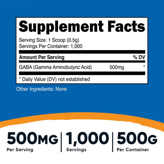 Nutricost Pure GABA 500G Supplement Powder (Gamma Aminobutyric Acid) (500 Grams/1.1 Pounds)