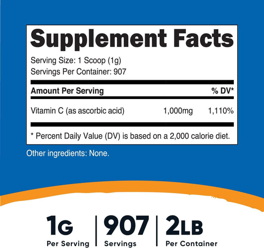 Nutricost Pure Ascorbic Acid Powder 2LBS (Best Deal)