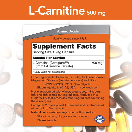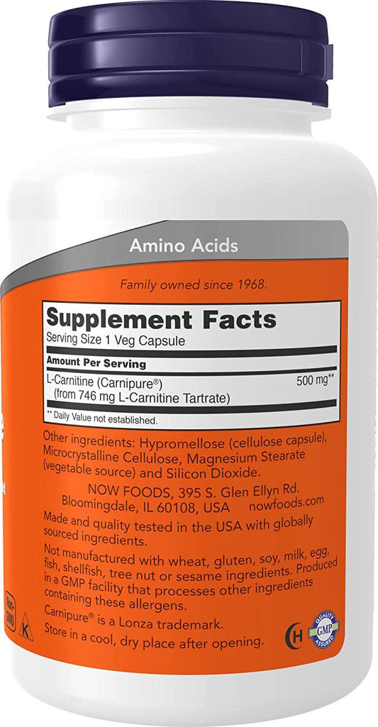 NOW L-Carnitine 500mg, 60 Veg Capsules